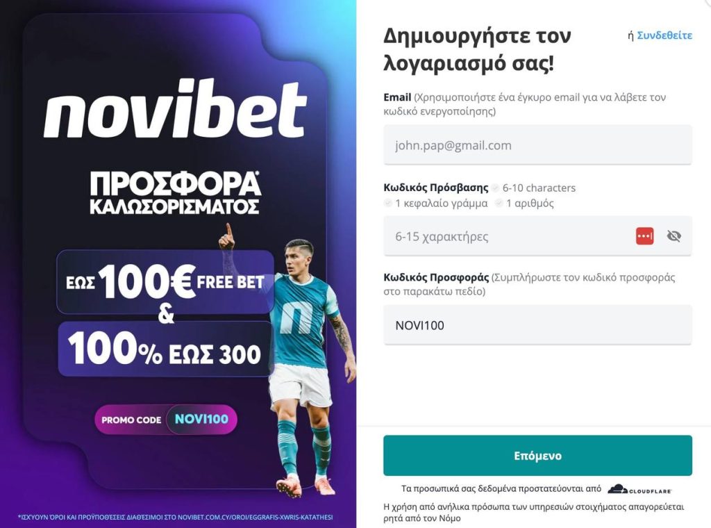 - Κάντε μια νέα εγγραφή στη novibet CY και αποκτήστε έως 100€ FreeBet